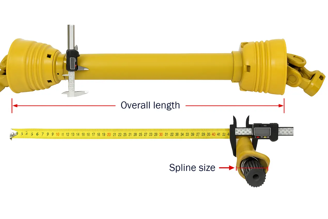 تصدیق کرنے والی پہلی چیز ڈرائیو شافٹ کی کل لمبائی ہے۔ اس لمبائی سے مراد پیچھے ہٹنے والی حالت میں پی ٹی او شافٹ کے اختتام سے اختتام تک فاصلہ ہے ، یعنی حفاظتی احاطہ کو چھوڑ کر ، ایک کانٹے کے بیرونی کنارے سے دوسرے کانٹے کے بیرونی کنارے تک۔ بہت سے صارفین صرف میان کی لمبائی کی پیمائش کرتے ہیں ، جو غلط ہے۔